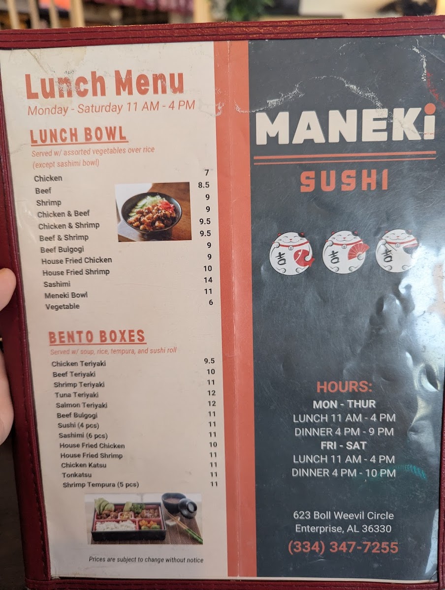 Nestled in Enterprise, Alabama, Maneki Sushi serves up an inviting blend of exceptional quality sushi and a warm dining atmosphere. Many patrons rave about their experience, with customers highlighting the exquisite sushi dishes that stand out even in landlocked locales. The complimentary miso soup enhances the dining experience, showcasing the restaurant’s dedication to customer satisfaction.